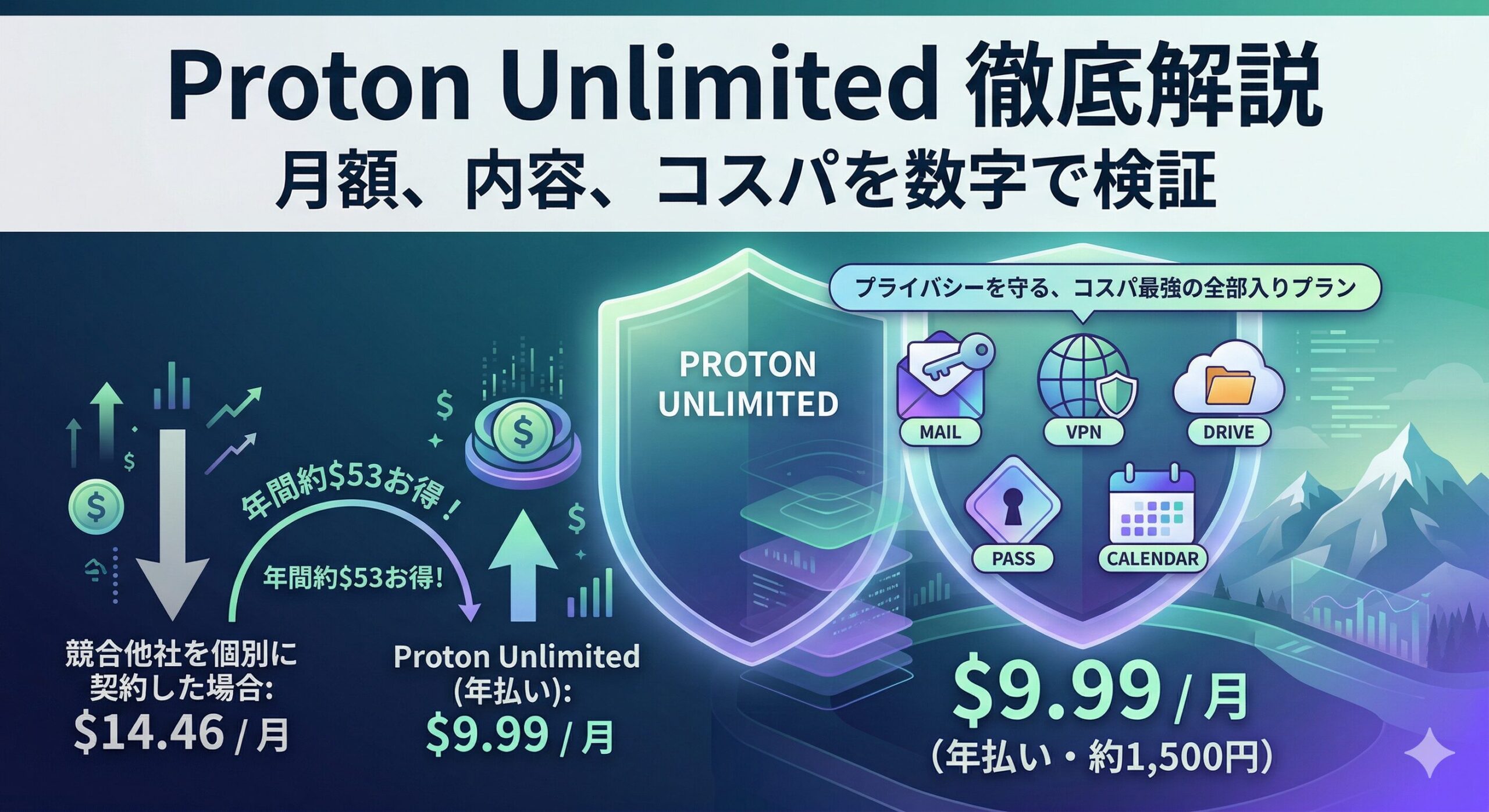 Proton Unlimited $7.99(年払い) 500GB Mail・Drive・Calendar・Pass・VPNのフル機能がすべて含まれる