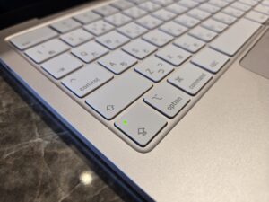 Macの場合は以下の画像の「Caps Lock」キーに戻り色のライトがついている場合は、すべてが大文字になってしまっています。