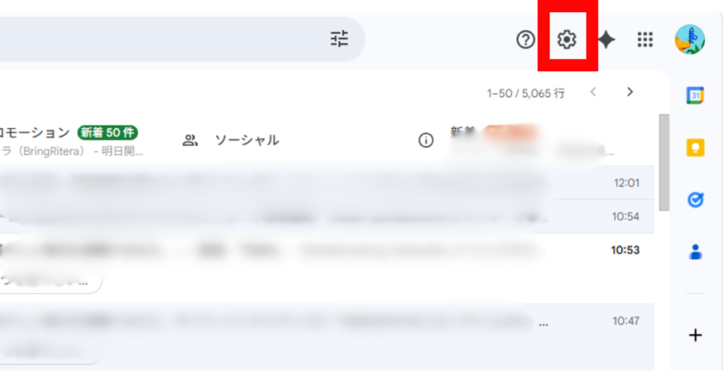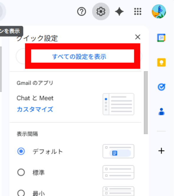 手順1:Gmailの設定画面を開く