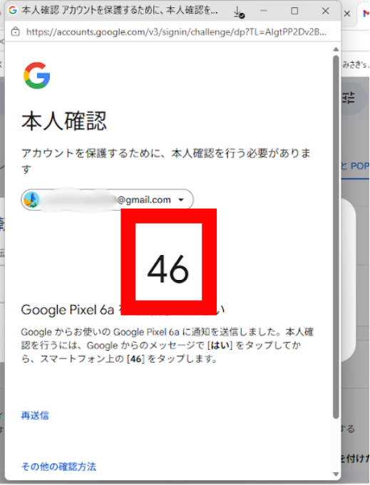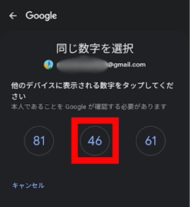 デスクトップと同じ数字をスマホで選択して認証します。